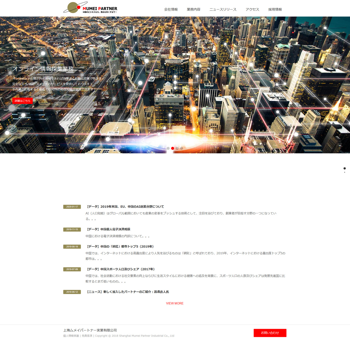 公司主要為日本企業(yè)在中國提供投資、經(jīng)營以及法律等服務。九城科技結合企業(yè)日本客戶上網(wǎng)體驗,優(yōu)化頁面,網(wǎng)頁設計簡潔,為客戶提供了網(wǎng)站設計以及程序后臺開發(fā)服務!